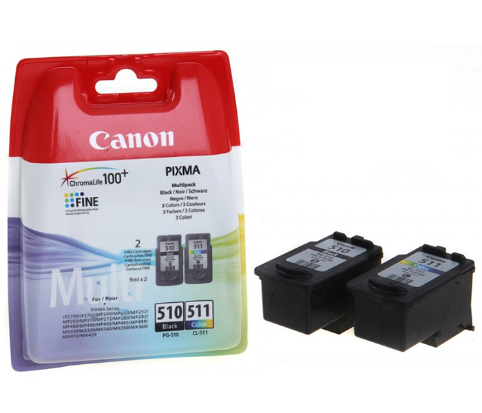 Canon PG-510/CL-511 (İP2700-MP230-MP235-MP240-MP250-MP252-MP260-MP270-MP272-MP280-MP282-MP480-MP490-MP492-MP495-MX320-MX330-MX350-MX360-MX410-MX420) Orjinal 2'Li Paket (Multi-Pack) Kartuşu