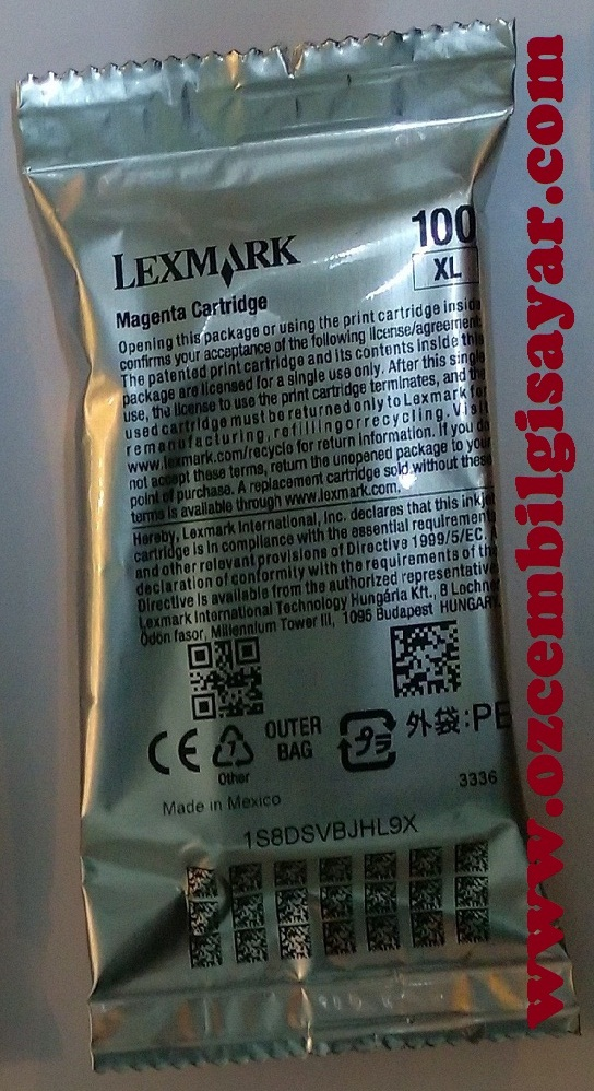 Lexmark 100XL Orjinal Kırmızı (Magenta) Mürekkep Kartuşu (Folyada)